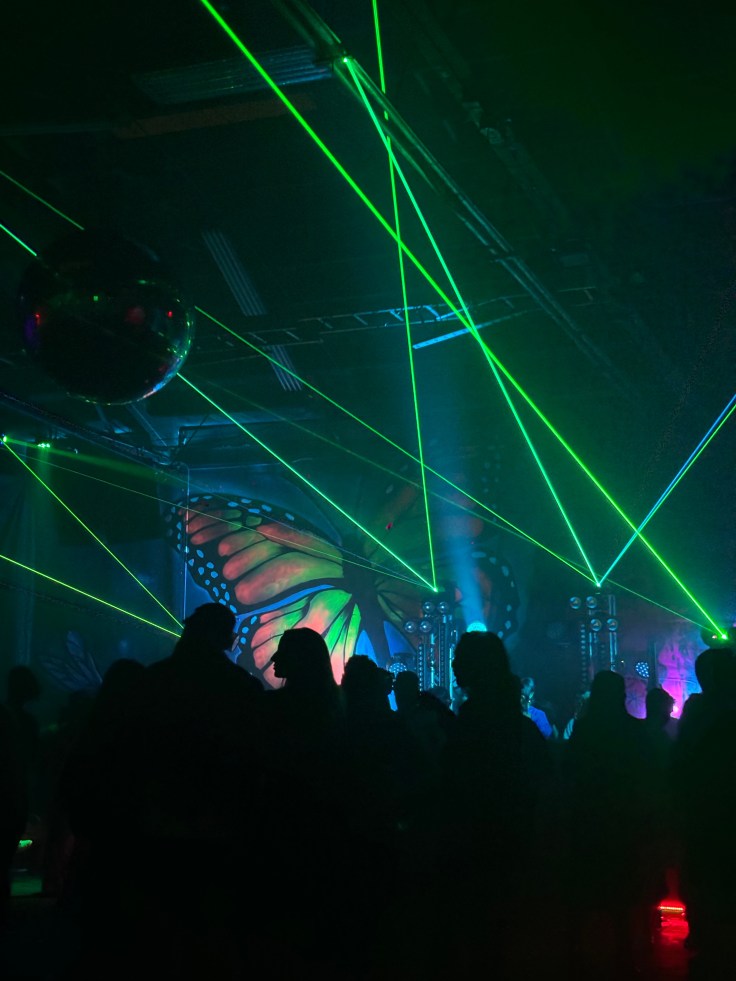 Molly pulled up to my place around 10:40pm after driving all the way from Ventura County. She got ready quickly, and by 11:20pm Chuy showed up and we were out rushing to get to the venue before midnight for free entry. As soon as we stepped in, Molly lit up. She spotted a disco ball and a butterfly right away, two of her signs from the universe and I knew I made the right call taking her here instead of somewhere like Pacific Beach.